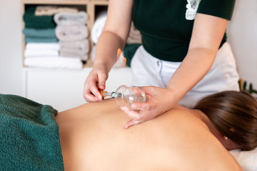 Das Schröpfen ist eine bewährte Methode, die Wärme in den Körper bringt und die Durchblutung, den Lymphfluss sowie den Stoffwechsel anregen kann.